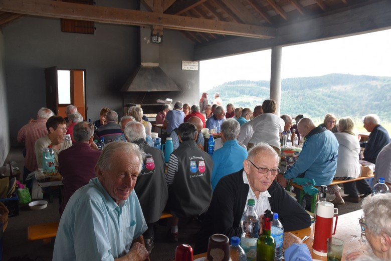 Côté apéro, c’est la présidente qui a pris en charge, offrant ce précieux breuvage aux 64 convives qui, à 13h15 ont eu une frayeur avec le passage d’un orage qui, le temps que les desserts passent de table en table, avait déjà disparu !