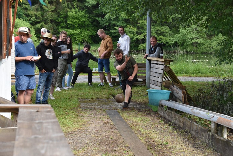 Il y a bien eu un peu de pluie, mais pas de quoi troubler outre mesure le premier opus des concours de quilles de cette année 2022 proposées par la Fourmilière dans le paisible cadre de Presles. La météo changeante a même permis de profiter de l’apparition éphémère d’un superbe arc en ciel sur l’étang de Presles.