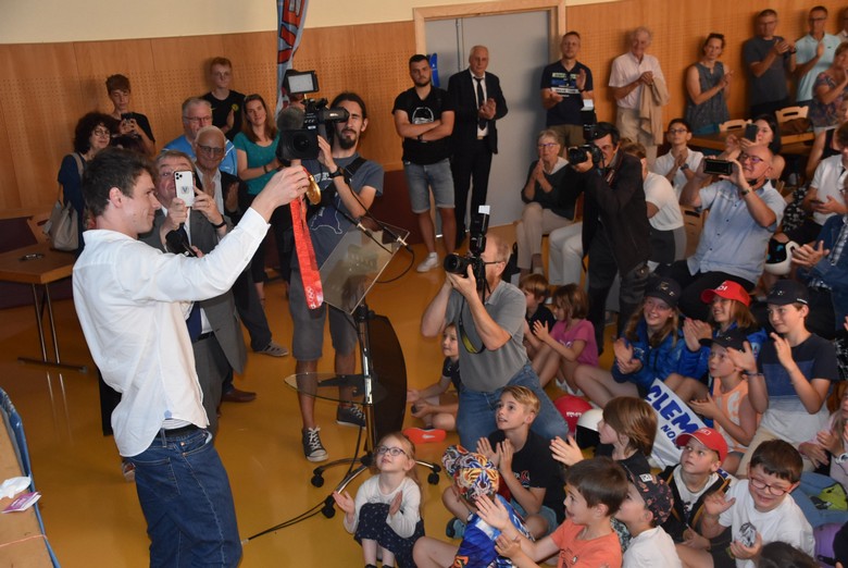 Au micro, les élus se sont succédé pour vanter les mérites de Clément, reprenant tour à tour des mots essentiels parmi lesquels « Fierté », « Emotions », « Ambassadeur » et cette « Humilité » dont fait preuve le jeune sportif en toute occasion. François Vannson, de retour en terre connue, a profité de l’occasion pour remettre la Médaille Départementale au skieur guédon, tandis que trois jeunes de l’US Ventron offraient un cadeau à celui qui, quelque part, est devenu un modèle.
