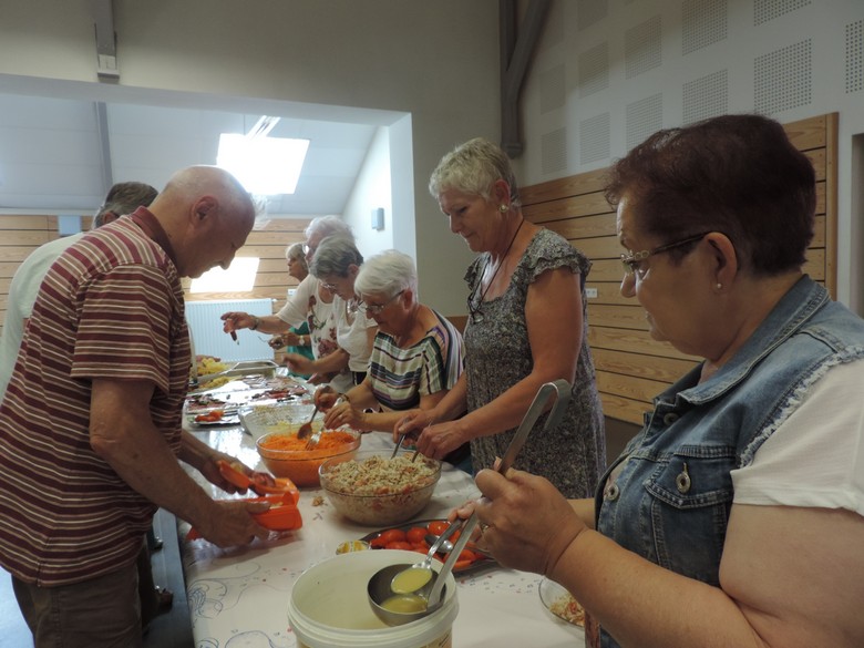 Pour autant, pas question de passer outre le traditionnel repas de fin de saison qui, cette année, n’en sonnera donc pas le glas ! Ces moments de bonheur partagé autour de la table sont depuis belle lurette au menu des membres du Club qui, récemment, se sont retrouvés autour d’un bon repas au Ballon d’Alsace après l’assemblée générale et la traditionnelle et toujours appréciée choucroute. Ce pique-nique de fin d’année a rassemblé 53 personnes autour d’un repas froid et alléchant à la salle des fêtes, concocté par « Les Cousines » côté viandes et salades diverses et « La Panetière des Arcades » de Bussang pour la partie pâtisserie.