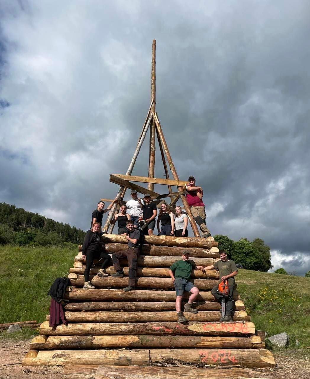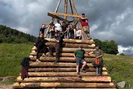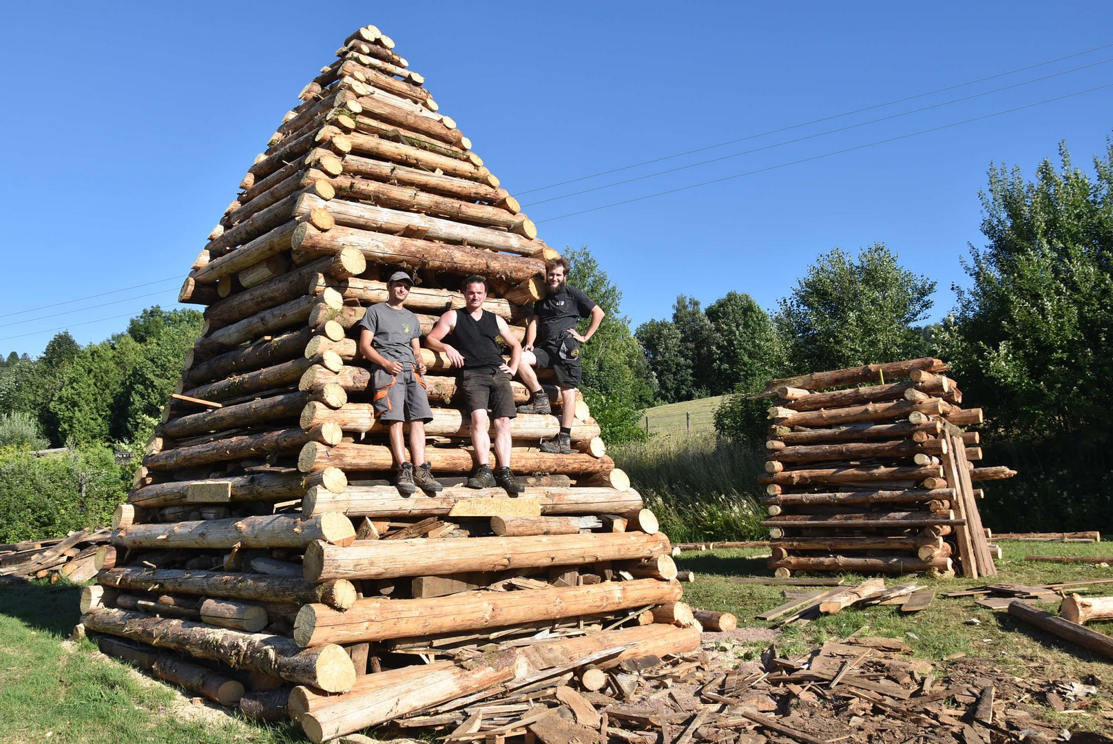 efforts pour monter une imposante chavande à proximité de la Chapelle des Vés.