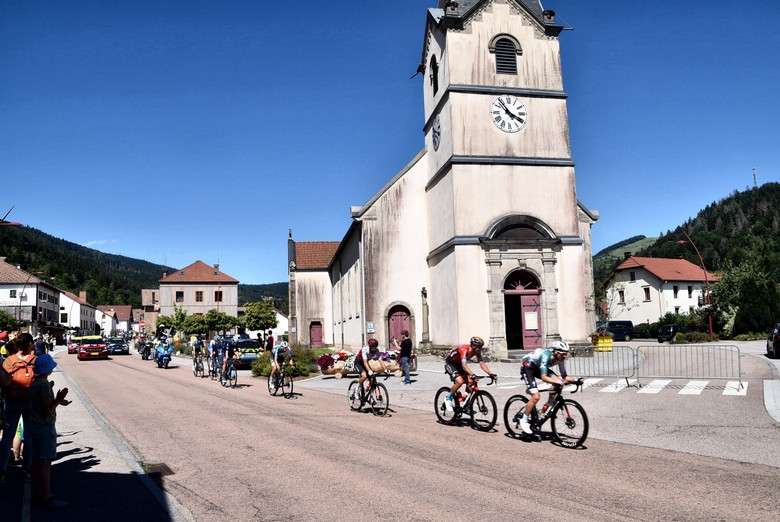 Au Thillot, un gros rassemblement a concentré de nombreux spectateurs devant l’écran géant installé par l’équipe de « Myne et Rails » avec la complicité bienvenue de Cédric Grosjean de Pulsat, au niveau de l’entrée vers le col des Croix.