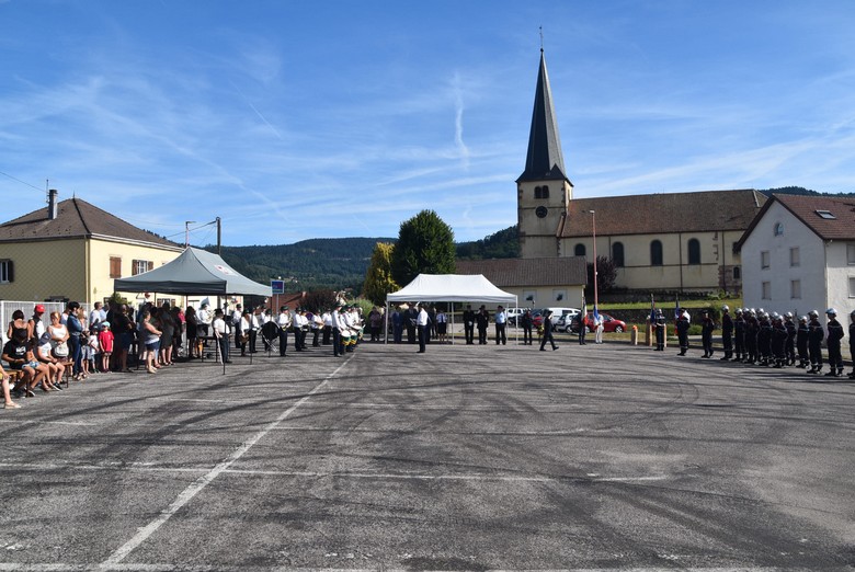 Des officiels, parmi lesquels Christophe Naegelen, Dominique Peduzzi, Michel Mourot, Jean-François Viry, mais aussi la Cdte Boury, cheffe du Groupement Montagne des pompiers, le représentant de la Base Aérienne de Luxeuil et Christelle Maurice de la police intercommunale était présents à ses côtés pour un cérémonial tiré au cordeau dirigé par Florian Neveu à la sono, accompagnant le Ltn Olivier Villaume, chef du protocole, qui n’aura laissé ses fonctions à la Cdte Boury que le temps qu’elle lui remette son insigne de chef de centre. Un moment rehaussé de belle manière par la Ramoncenaise Musicale.