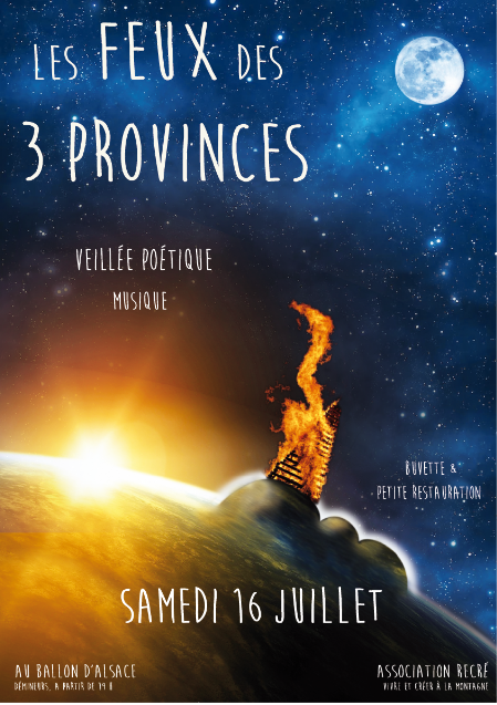 Les Feux des Trois Provinces, les plus hauts des Vosges et de la région… en altitude, perchés entre 1200 et 1247 m, avec la traditionnelle chavande centrale montée aux Démineurs sur le territoire de St Maurice et les petits feux signal montés au sommet, dont un près de la statue de Jeanne d'Arc, le second près de la statue de la Vierge. Un retour à la normale, donc, puisque l’an dernier, malgré les difficultés de la période, RECRE a tenu à refaire dans leur ampleur traditionnelle la 26ème édition de cette manifestation.