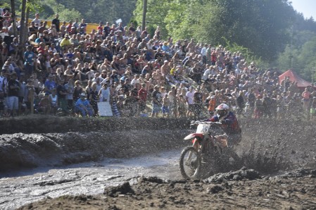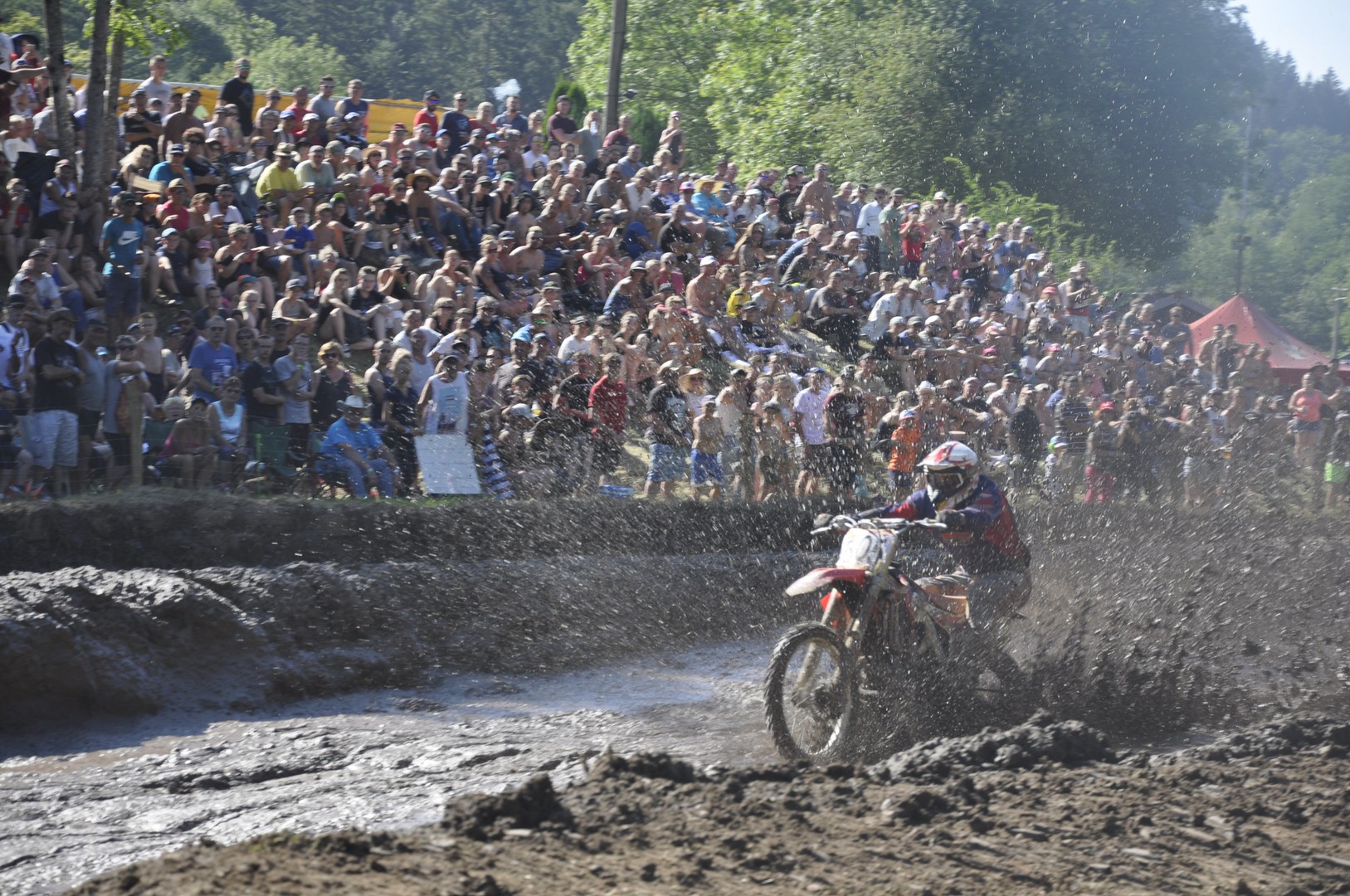 Trentième édition ! Un bail donc, que ce show mécanique est né dans la tête d’une bande de « givrés », et qui ont su la mettre en exécution, créant un événement incontournable pour tous les afficionados du genre. Et ils sont nombreux, issus de lieux souvent très éloignés de la vallée de la Haute Moselle, venant ainsi récompenser les efforts incessants de l’équipe du Moto Club RN66 qui, fidèle à son cri de ralliement « GAAAAZZZZZ ! », a une nouvelle fois mis les gaz plein pot pour, non seulement préparer la gangue de boue aux « p’tits oignons », mais a de plus surmonté les difficultés administratives liées à la quantité d’eau nécessaire pour la préparer. « L’engagement que nous avons pris avec la préfecture est tenu » se réjouit David Dieudonné, le président du Moto Club RN66, en affichant un large sourire « Nos réserves n’ont été remplies que d’eaux pluviales, qui permettront de préparer une belle boue pour ces deux journées, mais aussi de nettoyer les véhicules et pilotes après leur affrontement avec le parcours ».