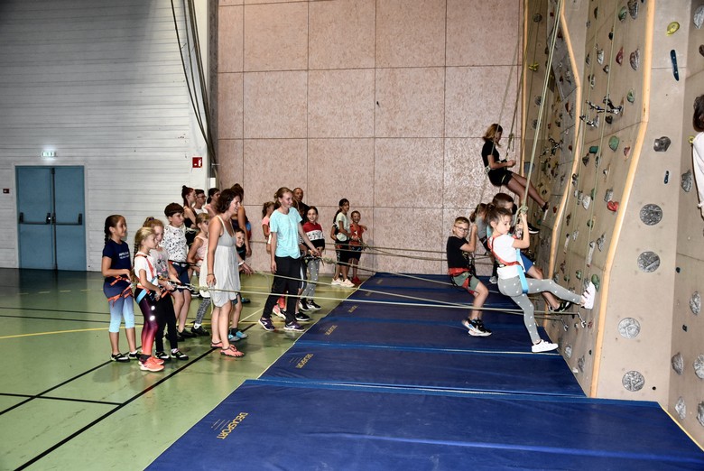 En attendant, les groupes constitués à moitié par de nouveaux grimpeurs, ont dû écouter avec concentration les nombreuses consignes de sécurité préalables avant de se retrouver au pied du mur, harnachés dans leurs baudriers, les cordes passées dans leurs mousquetons, et vérifiés par les cadres du jour : Patrick bien sûr, bien aidé par Coralie, Thiphaine et Johanna, très précieuses pour encadrer ces groupes imposants. Si pour la majorité, l’exercice a semblé simple et a procuré le plaisir recherché, d’autres ont éprouvé quelques difficultés et leur envie de persister dans la pratique de l’activité a dû en prendre un coup. A suivre la semaine prochaine, puisqu’en fin de séance, l’animateur a invité tout le monde pour une seconde séance d’essai.