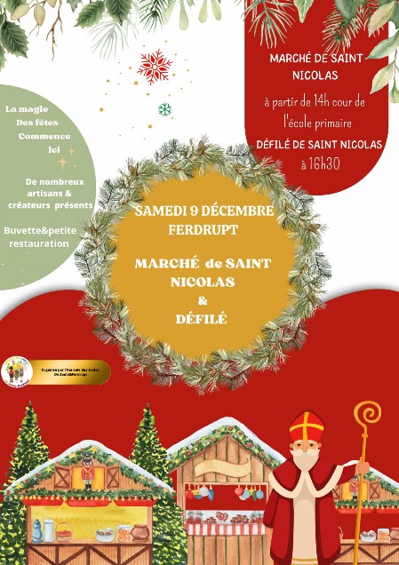 Le St Patron Lorrain a encore deux rendez-vous notés sur son agenda pour le samedi suivant 9 décembre. Il est attendu à 16h30 à Ferdrupt où se tiendra le Marché de St Nicolas, une première née de l’initiative de l’Amicale des Ecoles de Saulx – Ferdrupt, qui rassemblera, en complément d’un stand buvette-restauration, plus d’une dizaine d’artisans et créateurs. Une belle occasion pour débuter – ou poursuivre – les achats des cadeaux qui trouveront leurs places sous le sapin !