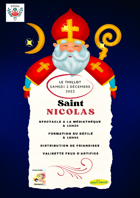 Ce même samedi 2 décembre, St Nicolas, dont tout le monde sait qu’il bénéficie du rare et précieux don d’ubiquité, est également annoncé à Ramonchamp à partir de 16h30. Rendez-vous est donné à la salle des fêtes.
