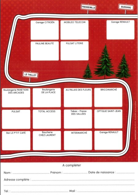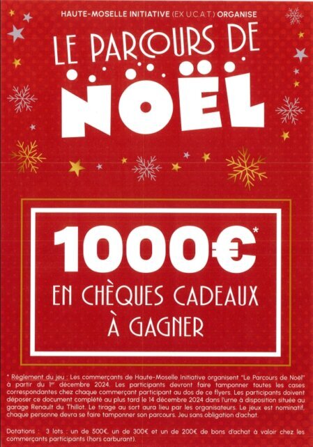 Pour cette période de fêtes, favorables aux achats de cadeaux, le staff de HMI met en jeu la jolie somme de 1000€ en chèques cadeaux à gagner. « Des bons d’achat à faire valoir dans les commerces participants hors carburant : 500 € pour le premier prix, 300€ pour le deuxième et 200 € pour le troisième » détaille Jimmy Bernier l’un des responsables de l’association « Du 1er au 14 décembre, les personnes auront la possibilité de faire tamponner leur bulletin de participation dans chacun des 17 commerces participants, avant de le déposer dans une urne qui sera à disposition au garage du Centre au Thillot » avant d’insister « Attention ; la participation est limitée à un bon par personne ».