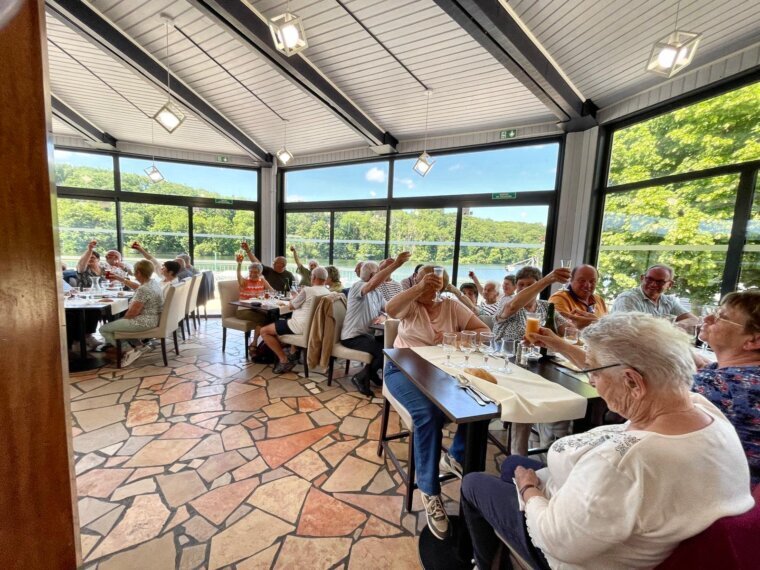 Les Fremis ont ainsi pu pleinement profiter de leurs amis et feuilleter une superbe page de tourisme local qui les a fait passer par « Blackwater », Musée de la Libération, lieu de mémoire regorgeant d’objet issus du dernier conflit mondial. Cette riche journée de vendredi s’est poursuivie avec un succulent repas au restaurant aux effluves très marquées de ce camembert, incontournable fierté Normande, et de cidre. L’après-midi était consacré à la visite de l’église de Ménil-Gondouin, un édifice marqué des ornements picturaux intérieurs et extérieurs réalisés par l’abbé Paysant, lui donnant un cachet des plus originaux, et constituant de longue date une curiosité touristique. Pour conclure cette journée bien remplie, il restait aux amis retrouvés à se laisser aller sur le « Val d’Orne » pour une balade pittoresque sur le lac de Rabodanges, situé dans ce coin de paradis verdoyant qui a mérité son surnom de « Suisse normande. De quoi imprégner les mémoires de superbes souvenirs, largement complétés par ces moments chaleureux dans les familles et cette réception festive au moment de l’arrivée des Fremis en terre normande.