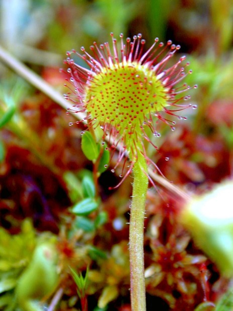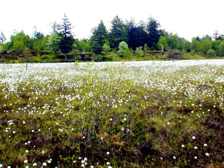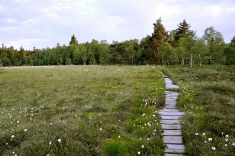 Cette tourbe porte donc dans ses entrailles les traces des végétations qui se sont succédées, véritable mémoire de la vie. C’est ainsi que sur 3.60m d’épaisseur sont inscrites 6700 années de patients enfouissements. En fouillant ce trésor, les scientifiques ont ainsi pu constater que le noisetier était sorti vainqueur de son combat face au bouleau. Aujourd’hui, la tourbière expose fièrement, selon les saisons, une végétation très spécifique. Les droséras et les linaigrettes y occupent une place de choix. La première est une plante carnivore de petite taille se délectant d’insectes après les avoir attirés et capturés à l’aide de ses poils glanduleux. La seconde est connue pour son allure échevelée, un peu à la manière de la coiffure hirsute que présente Albert Einstein sur certaines photos. Elles ne sont pas les seules. La sphaigne moussue dont la croissance contribue à la rehausse de la tourbière, les innombrables touffes de molinie, la canneberge à la fleur délicate avant l’apparition du fruit ou plus rarement la gentiane : l’écosystème est riche. Côté faune, il serait coupable de ne pas citer parmi d’autres l’emblématique tétras ou coq de bruyère.