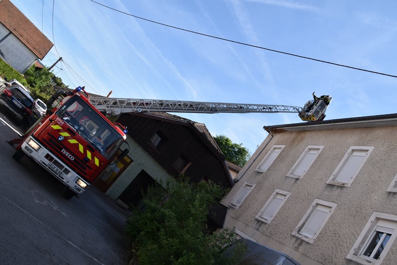 Une équipe d’une douzaine de sapeurs-pompiers est intervenue vers 13h00 sur un incendie de toiture consécutif à un feu de cheminée chez M et Mme Brice au 14 route des Ballons, le long de la RN66 entre Ferdrupt et Rupt sur Moselle. La gendarmerie était présente pour, dans un premier temps, réguler la circulation, entravée par la mise en place de la grande échelle de la caserne du Thillot, avant de la boucler totalement afin de laisser place aux pompiers. La lutte contre les flammes a nécessité l'envoi de renforts et ce sont 37 soldats du feu qui, en fin d'après-midi étaient toujours mobilisés pour venir à bout du sinistre. Le président du Département François Vannson, le préfet Yves Séguy, le président du SDIS Dominique Peduzzi et le colonel Larry Ouvrard, commandant le SDIS des Vosges étaient présents sur les lieux aux côtés de Stéphane Tramzal.